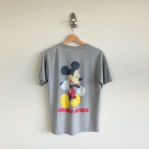 Kids Disney Mickey Mouse 1928 Evolution Grey Tee. Front Side has classic Mickey with the back side having iconic Mickey