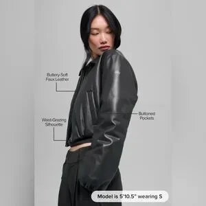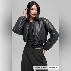 New Alo Yoga Faux Leather Cropped Premier Bomber - Black