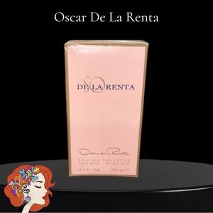 Oscar De La Renta Eau de Toilette. Elegant fragrance in a pink box. 100 ml bottle.