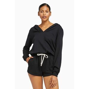 $115 Vitamin A Women's Black Emery Fleece Hoodie Romper Eco Soft Organic Large