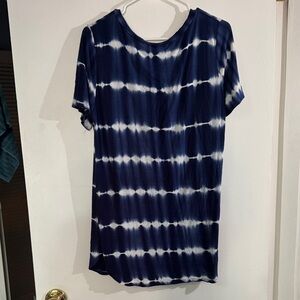 Elevate your casual wardrobe with this stylish navy tie-dye V-neck top. Perfect for any occasion, this top offers comfort and a trendy look.