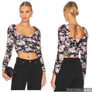 ASTR The Label Erica Floral Mesh Top Black S