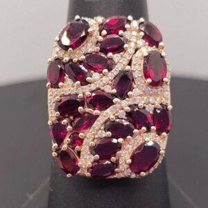Garnet and Moissanite Ring in Rose Gold Over 925 Silver Size8