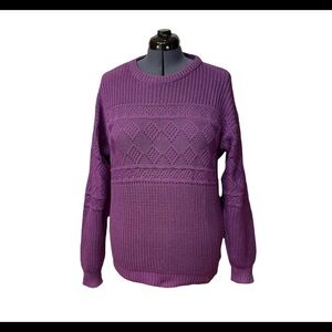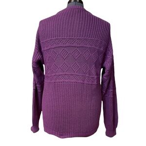 TONY LAMBERT Women's cotton pullover sweater with open weave designs. Size Medium. Beautiful purple color. Soft and stretchy. *Made in the USA.