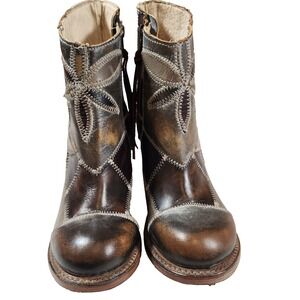 Freebird Flower Ankle Boot Leather Made In Mexico Stitch Detail Block Heel