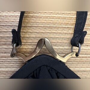 Kent Vintage Art Deco Black Evening Handbag Gold Hardware Integrated Coin Purse