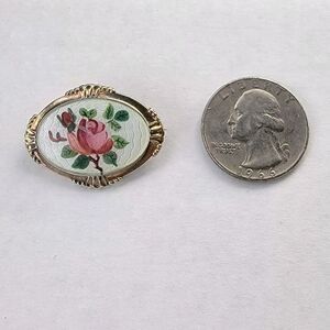 Arne Nordlie Sterling Silver Enamel Brooch Norway Norwegian Floral Rose. Stamped in the back as shown in photos. Condition as shown in photos. Single red rose with green leaves on white background.