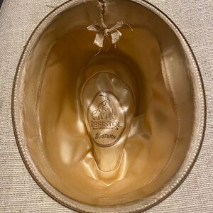 Vintage VTG Resistol Beige Ivory Canvas Western Cowboy Hat Feathers