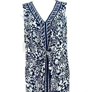 Apt.9 Women's Animal Print Navy White Cinched Waist Sleeveless Dress Size M NWT