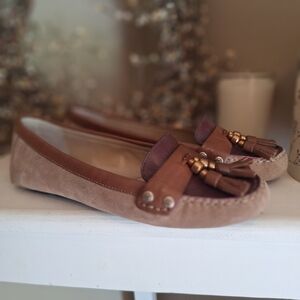 Classy pair of leather moccasin boat type shoes with tassels! Brand new with tags. Classic and casual! Size 6 1/2. These are so precious. :)