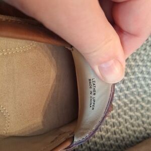 Note: There is a dark spot on suede shown in the photo. And the inside stickers are still intact. I tried to lift them just to see, and one of them seemed really stuck on, so there may be residue to clean after removing them, at least on one of them.