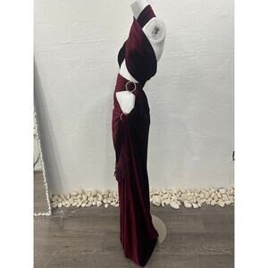 Bronx and Banco Velvet Cleopatra Wrap Maxi Dress Burgundy Women's Size 4