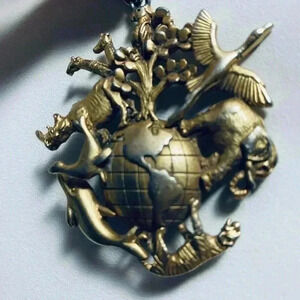 vintage ~ singed statement AJC~ pendant~Animal of the world~ gold plated ~