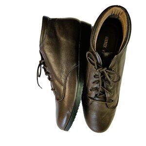 These Women Casual Walking Work Grunge Leather Ankle Boots come in dark brown, Lace-up closure, Round toe, Padded inside ankle opening for comfort, and deep treads for safety. They are extra wide width, May be worn for many casual occasions. Preowned. Like New Condition.