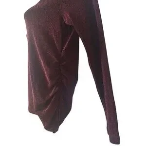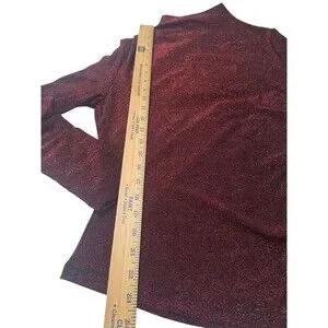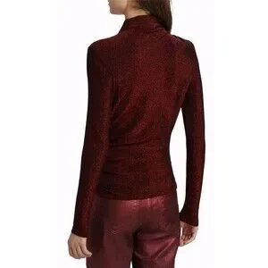 Elegant crimson turtleneck with metallic sheen. Perfect for evening wear. Stylish and sophisticated design.