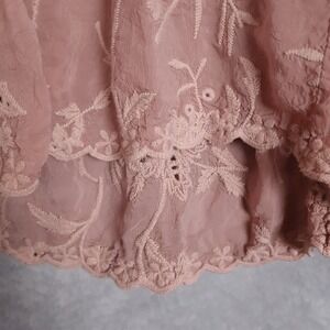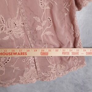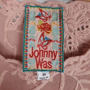 Johnny Was Tunic Shirt Womens XS Pink Embroidered Boho Peasant Top Floral Lace