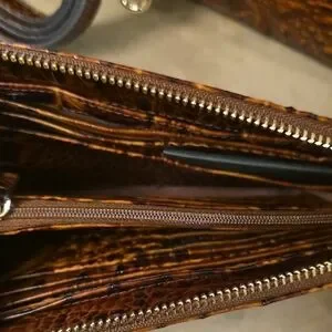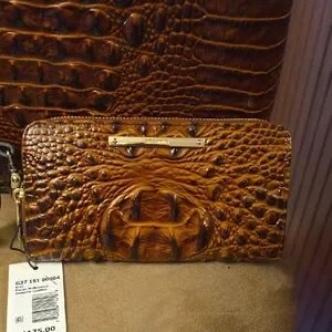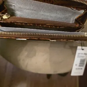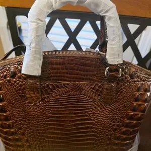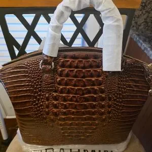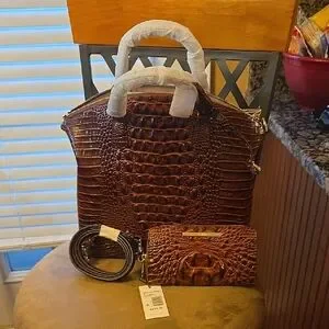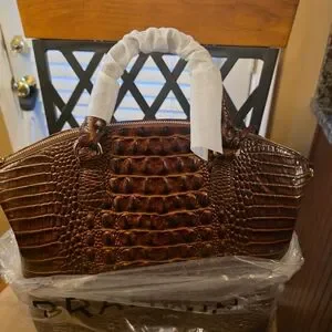 Elegant Brand new Brahmin handbag with a crocodile embossed design. Rich brown color. Includes shoulder strap. Perfect for any occasion. Includes matching wallet,brand new.