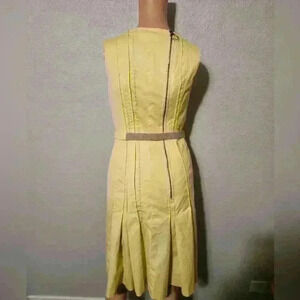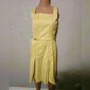 Akris Punto Sleeveless Green Yellow Pleated Dress Size 6 In Very Good Pre Owned Condition