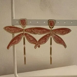 Elegant Tory Burch earrings with pink floral design. Accented with gold details. Perfect for any occasion.