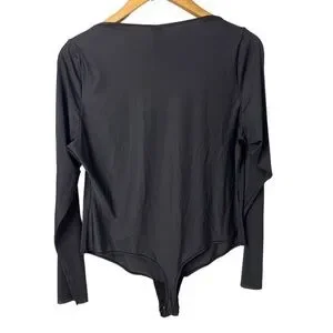 Skims Essential Long Sleeve Scoop Neck Black Size 4X Thong Lightweight Raw Cut