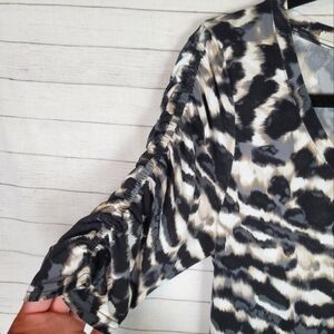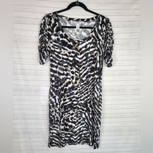 WHBM ANIMAL PRINT 3/4 CINCH SLEEVE SHIFT DRESS, SZ SMALL