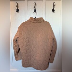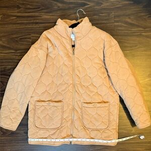 Elegant camel jacket with quilted design. Includes convenient front pockets and secure zip closure.