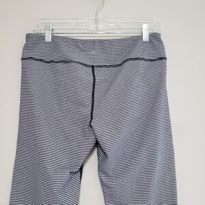 Lululemon Cropped Leggings Women 10 Navy Blue White Gingham Checkered Preppy