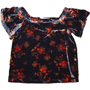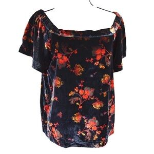 NWT LOFT Velvet Off the Shoulder Dark Floral Top, Flutter Sleeve - Size Medium