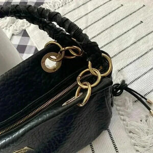 Black Bebe Shoulder Handbag with Silver Hardware Textured Crocodile Purse