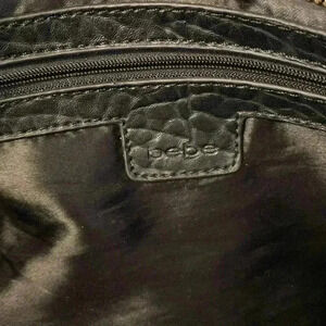 Black Bebe Shoulder Handbag with Silver Hardware Faux Crocodile Leather