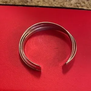 This elegant silver-tone cuff bracelet features a minimalist, modern design with three smooth, curved bands for a chic and timeless look. Perfect for dressing up any outfit, whether casual or formal. Lightweight and comfortable to wear all day, this bracelet adds just the right amount of shine to your wrist. Ideal for anyone who loves contemporary jewelry.Adjustable.
