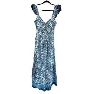NWT Lucky Brand Women’s Floral Tiered Maxi Dress Blue White Size M
