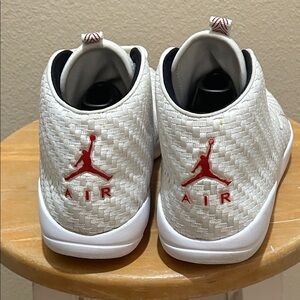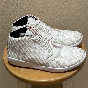 The Jordan Eclipse Chukka in White Gym Red Black, size 12, is a stylish and versatile sneaker designed for men. Released in 2017, this athletic shoe features a unique color combination of white, gym red, and black, with the iconic Jordan brand logo. With a comfortable fit and durable construction, this model is perfect for everyday wear or sports activities. Displaying the style code 881453-101, this Jordan Eclipse sneaker is a standout choice for those looking for a blend of style and performance in their footwear collection.