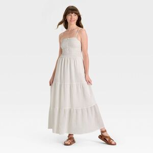 Universal Thread - Women's Button-Front Smocked Maxi Sundress - Unive White