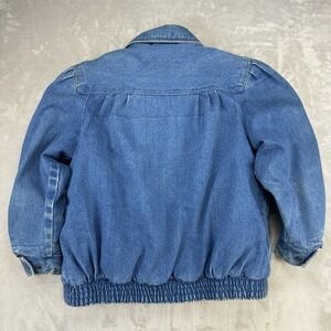 VTG 90s Women's Denim Bomber Jacket AOP Newspaper Print Lined Blue Jean Coat M