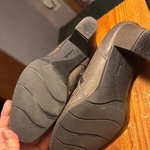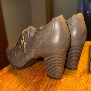 Chic taupe leather loafers with a stylish buckle. Comfortable block heel for all-day wear. These can be purchased online right now on sale for $80. I believe these are called Emily2 Darcey loafers. Like new with minimal wear shown in picture of shoe bottoms.