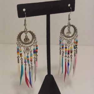 Boho Tassel Earrings Beaded Royal Feather Fringe Hook Fashion Jewelry Native