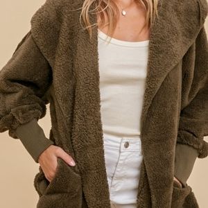 One size Olive Faux fur So Soft plush hooded teddy jacket with pockets