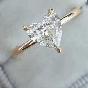 Heart-shaped engagement ring with inlaid synthetic gem and golden-toned alloy band.