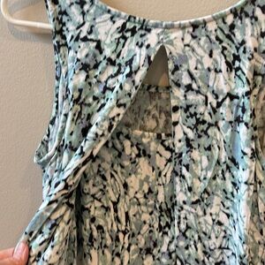 Pre-Owned in Good Used Condition, Rose & Olive Multi-Colored Patterned Sleeveless Tank Top Front with a Back Keyhole Design, Blouse, Shirt Size Medium
