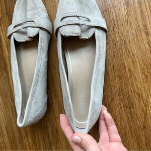 Step out in style with Vionic's elegant cream suede loafers. Perfect for any occasion, these shoes offer both comfort and sophistication.