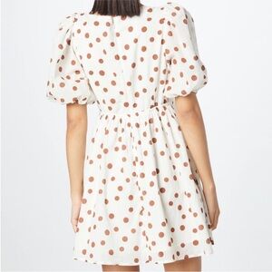 Abercrombie & Fitch Cream & Brown Polka Dot Puff Sleeve Mini Dress, Size SP