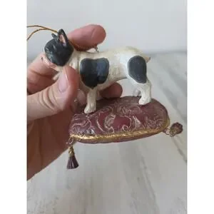 Paper mache bulldog terrier Boston dog puppy ornament pillow Xmas tree