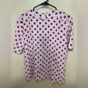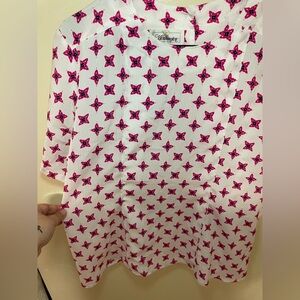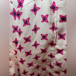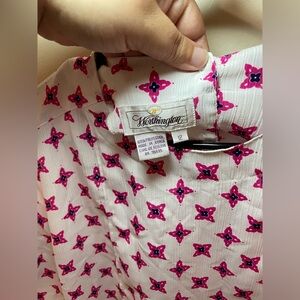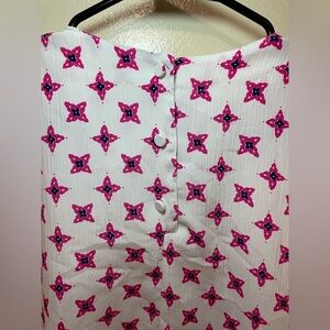 Women’s worthington blouse. 100% polyester. White, pink, navy blue. 3 buttons in the back. Size 12 ( like a M). Like new! Super cute!