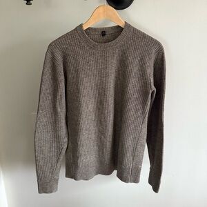 MUJI sweater, Muji knit, wool yak sweater, yak wool knit, minimalist sweater, ribbed knit sweater, brown sweater, neutral sweater, capsule wardrobe, Japanese brand sweater, cozy knit, crewneck sweater, unisex sweater, men’s minimalist sweater, women’s minimalist sweater, natural fiber sweater, slow fashion, quality knitwear