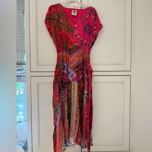 Farm Rio Colorful Floral Bandana Beaded Belt Waist Midi Dress size S