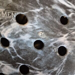 Comfort meets adventure in these Crocs All Terrain Elements Collection clogs featuring a black marble "water" print, rugged soles, and adjustable heel straps with reflective tabs. Made for outdoors - water-friendly, lightweight, and easy to clean.