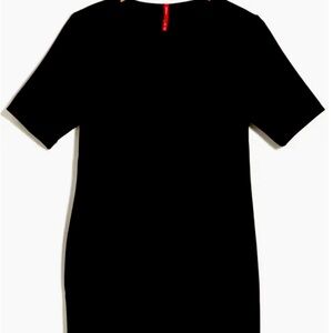 This sophisticated black mini dress by SPANX features a flattering v-neckline and a sleek sheath silhouette, perfect for work or cocktail events. The short sleeves add a touch of elegance, while the minimalist design ensures a timeless appeal.