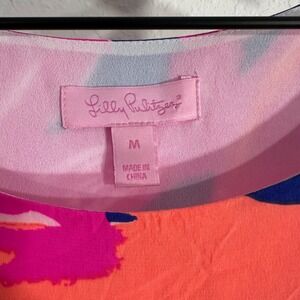 Lilly Pulitzer Jackie Plume Blume Silk Shift Dress Pink Blue Medium Flamingo