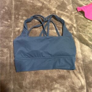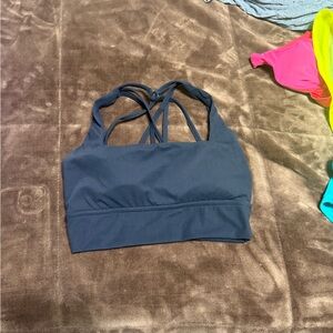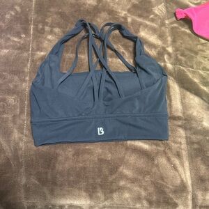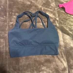 Stylish strappy back design. Ideal for workouts. Comfortable fit. Good used condition. Has pads . Size small. Black